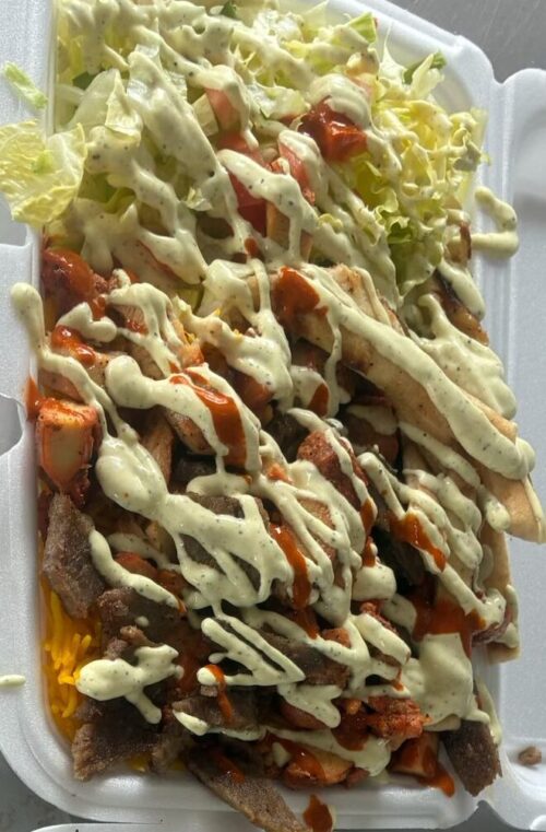Our gyros are a customer favorite — packed with tender halal meat, fresh veggies, and flavorful sauces. Whether wrapped in warm pita or served over rice, each gyro is made to deliver authentic taste and hearty satisfaction in every bite.